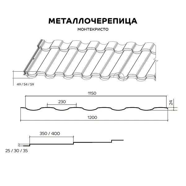 Металлочерепица МП Монтекристо — долговечный, износостойкий, маловесный материал для кровли. Он выполнен из оцинкованной стали. Металлочерепица МП Монтекристо отлично подходит как для частного домостроения, так и для масштабной застройки.