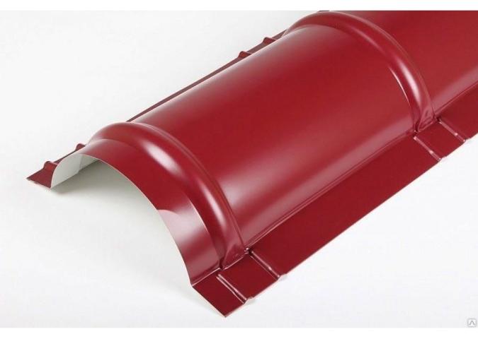Конек круглый, идеально подходит для сложных четырех скатных кровель из металлочерепицы. Придает крыше объем и сходство с керамической кровлей.